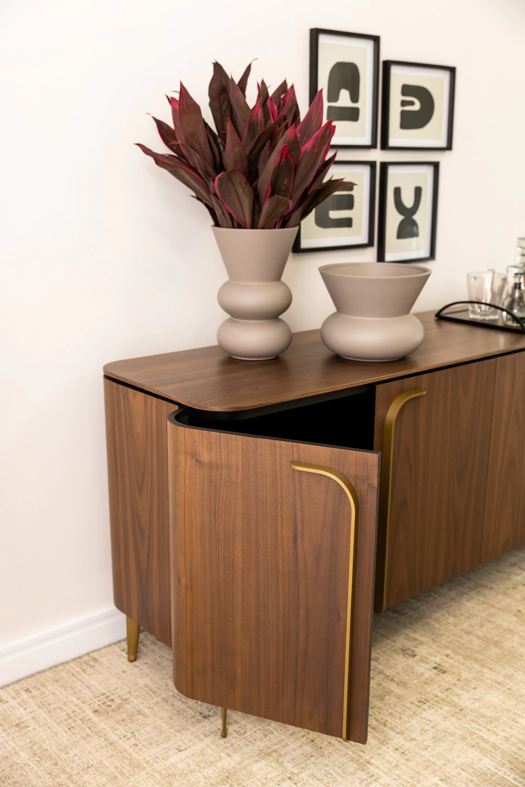 O buffet é fabricado em madeira maciça e MDF multilaminado finalizado nos padrões de acabamento disponíveis.