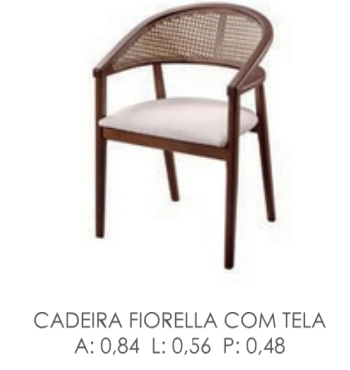 Cadeira em madeira maciça com braços e encosto tela - FIORELLA