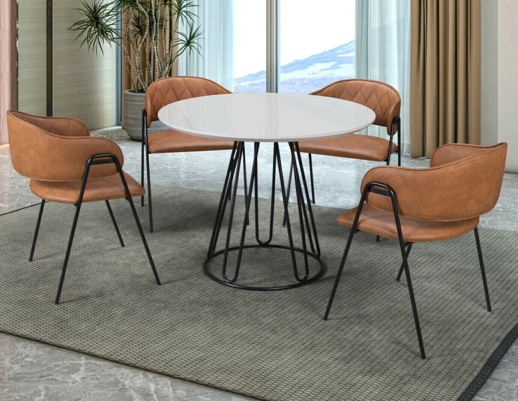 Cadeira Jantar com braços e pés metal courino - VENEZA