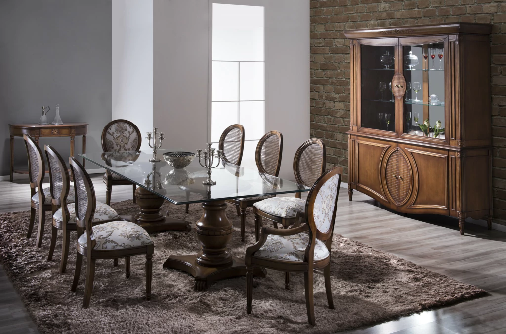 Conj Jantar Clássico Mesa com Cadeiras Aparador e Cristaleira - ELLOS