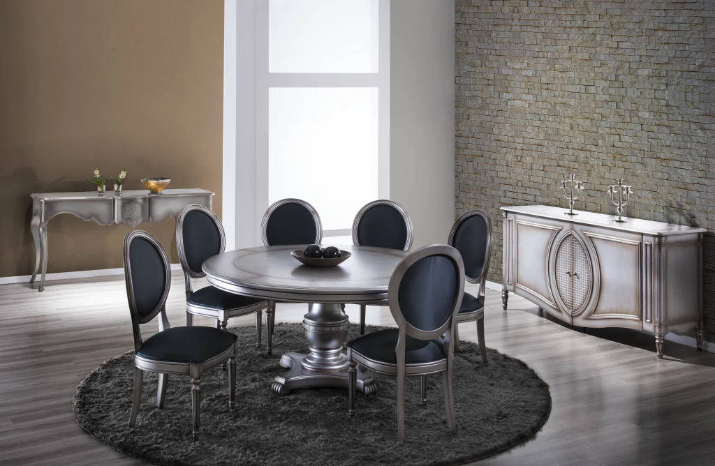 Conj Jantar Clássico Mesa redonda com Cadeiras Aparador e Cristaleira - ELLO