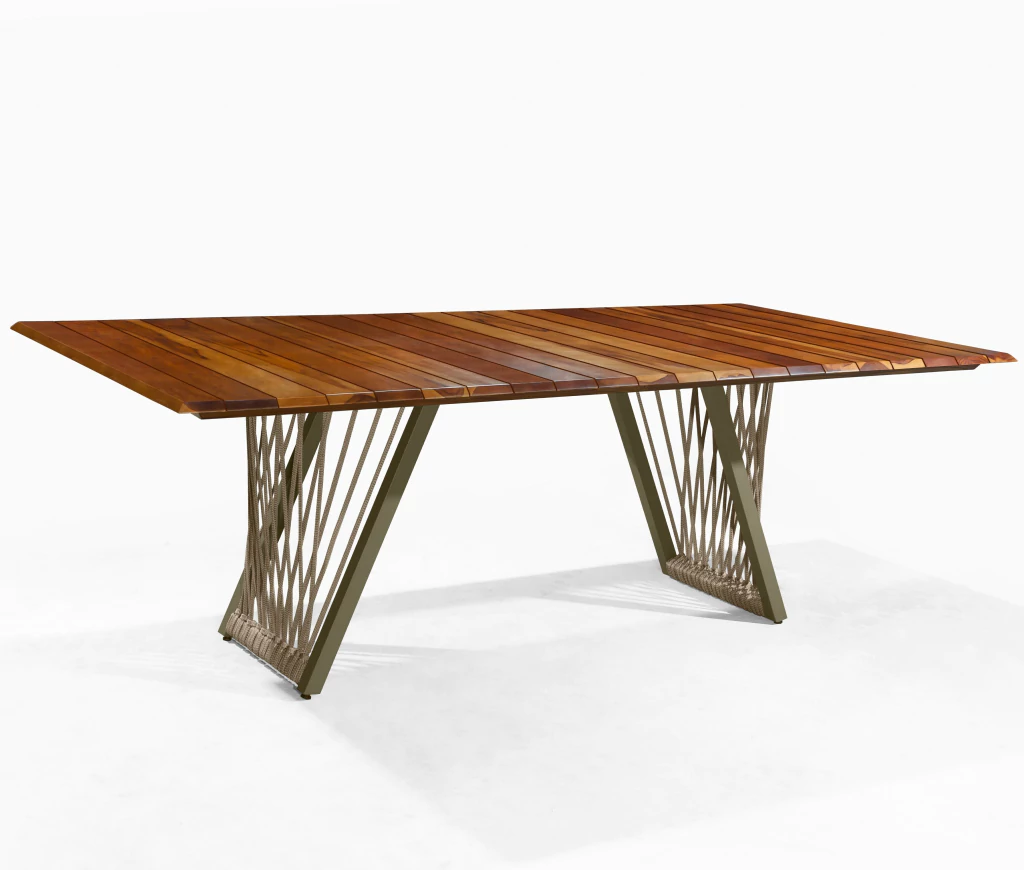 Conjunto mesa com 8 Cadeiras para Varanda em Madeira Maciça e Cadeiras em Tricô Nautico e Alumínio - NEW MALTA