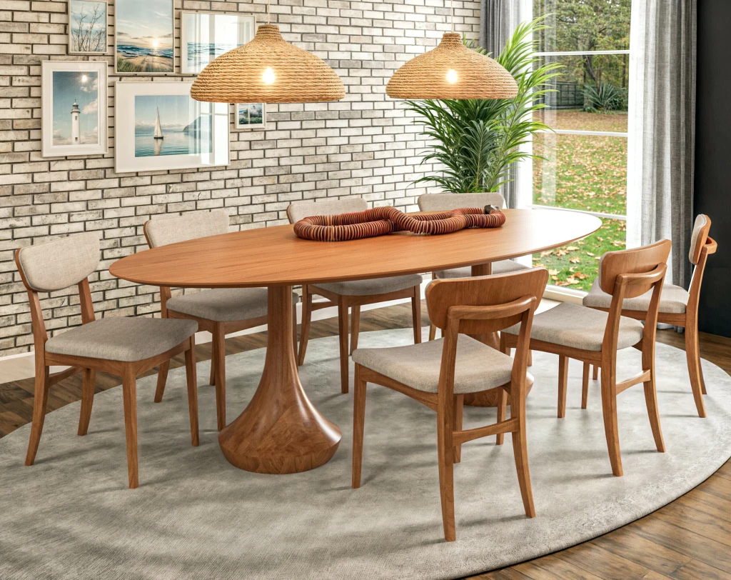 Conjunto mesa jantar oval com 8 cadeiras - MAHAL