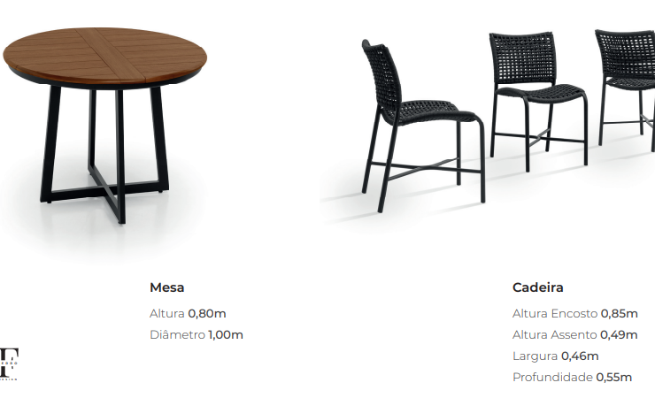 • Assento Estofado e Encosto em aluminio e corda nautica