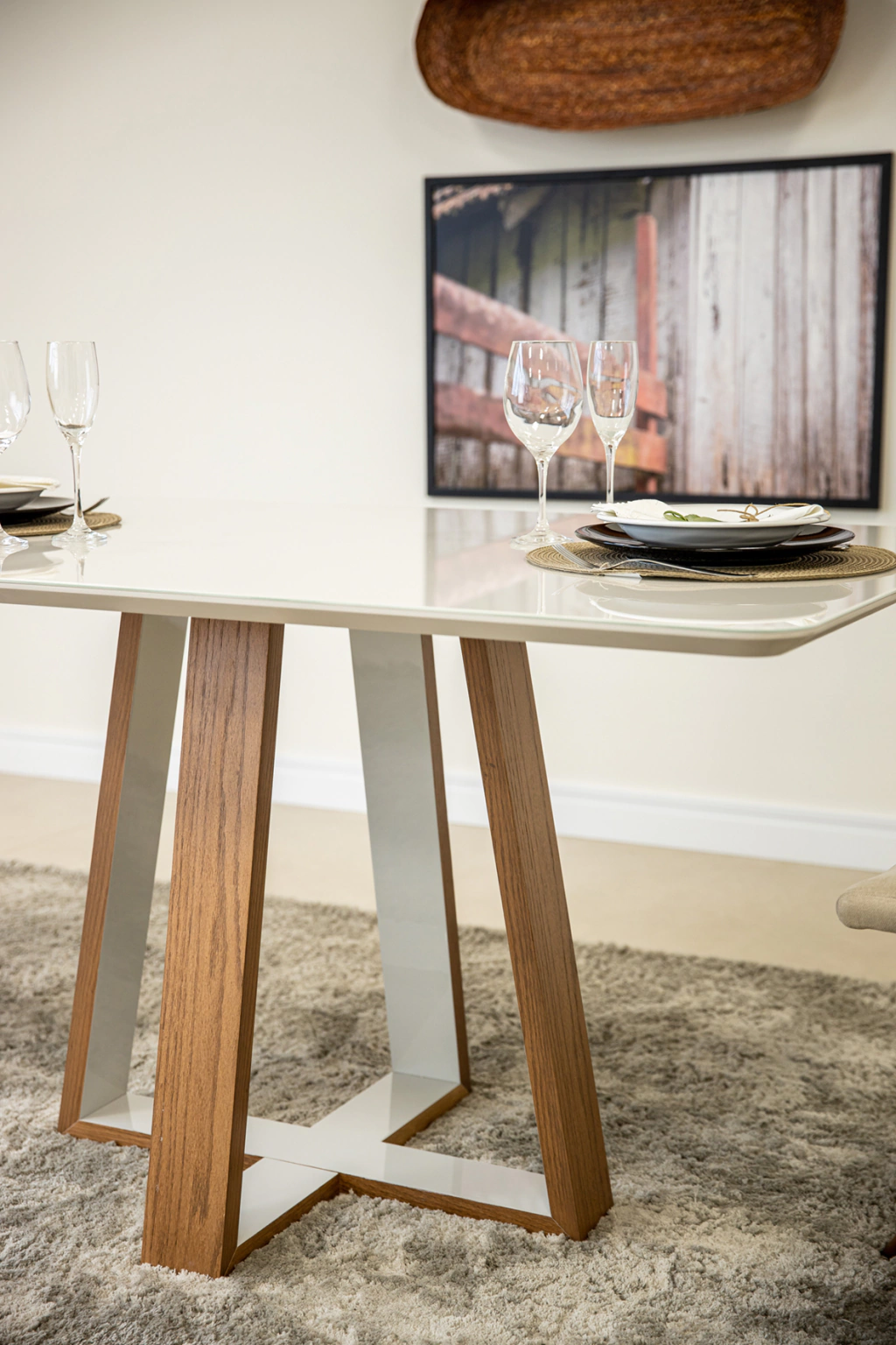 A Mesa de Jantar Granno possui um tamanho ideal para ambientes menores, agregando beleza, conforto e praticidade com qualidade em sua sala de jantar. Ela foi desenvolvida pensando em seu bem estar e de sua família.
