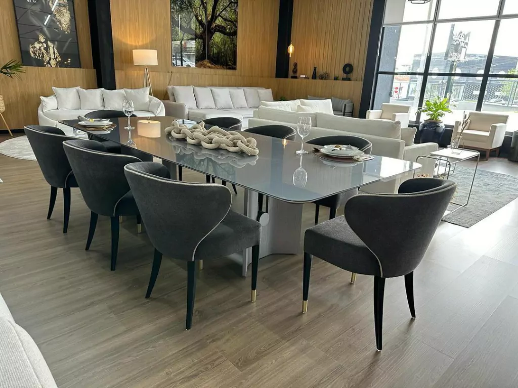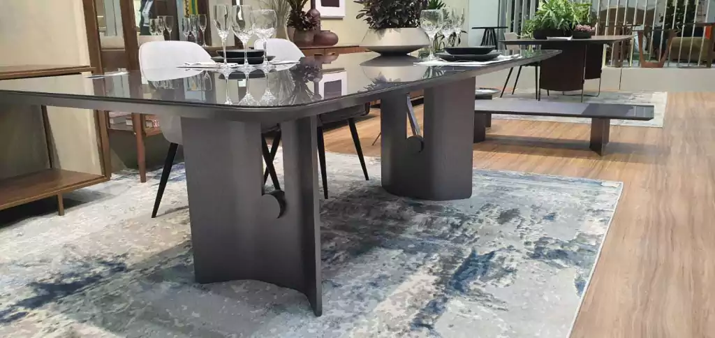 A Mesa de Jantar Scala demonstra muita elegância em seu design, transformando a sala de jantar em um ambiente sofisticado. Suas formas angulares trabalhadas de forma curva tornam a Scala uma peça única.