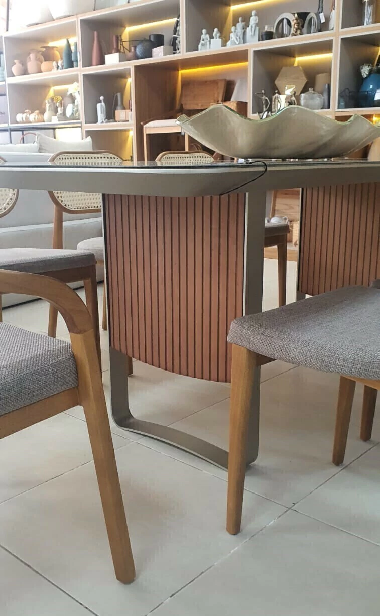Mesa Jantar de 1,80m à 3,00m Retangular Tampo Madeira - ALINE