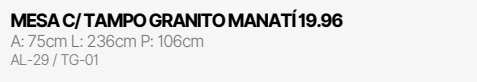 Mesa jantar em Alumínio e tampo granito 2,36m para Varanda Lacasa - MANATÍ