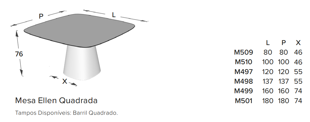 ---A Mesa Ellen traz a proximidade equilibrada entre todos os lugares, interação natural e aproveitamento uniforme do espaço de uma mesa quadrada.