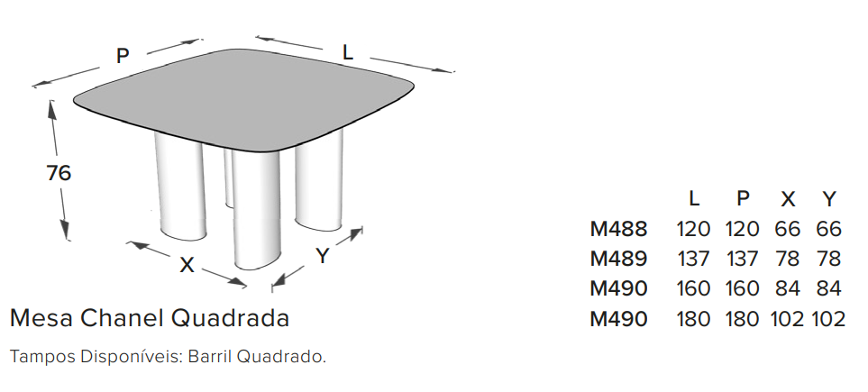 ---A Mesa Chanel traz a proximidade equilibrada entre todos os lugares, interação natural e aproveitamento uniforme do espaço de uma mesa quadrada. Seu design se destaca pela estabilidade e leveza visual proporcionada pelas quatro bases centralizada, onde a distância entre as bases garante o perfeito encaixe das cadeiras, acomodando-as de forma organizada e mantendo amplo espaço para as pernas.