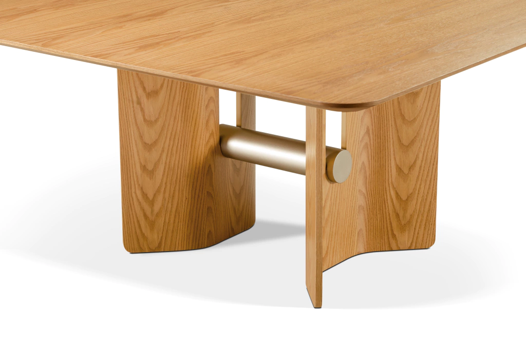 Estrutura: É composta por madeira e metal. O acabamento padrão inclui um tampo em madeira Carvalho Amêndoa e uma base em metal champagne metalizado combinada com madeira Carvalho Off White. Além das opções de acabamento padrão, é possível personalizar o móvel com outras combinações. As opções disponíveis incluem tampo em Nogueira, Carvalho Metalizado Champagne, Carvalho Metalizado Titanium, e Laca Branca em Vidro Extra Clear. Para a base, você pode escolher entre Nogueira com detalhe Metalizado Dourado, Nogueira com detalhe Metalizado Gold, Carvalho Metalizado Champagne com detalhe Metalizado Champagne, e Carvalho Metalizado Titanium com detalhe Metalizado Titanium. Os preços para essas personalizações são fornecidos sob consulta.