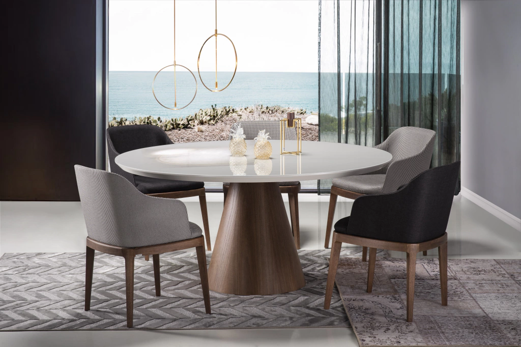 Mesa Jantar Redonda em Madeira e Tampo Vidro 70cm á 1,60m - BIANCA