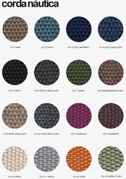 • Encosto em Corda náutica e estofado de alta durabilidade.