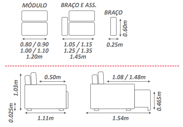 *Sofá Modulado - 2 Módulos com Braço de acordo com medidas disponíveis dos Módulos. Também possível adicionar módulos centrais.