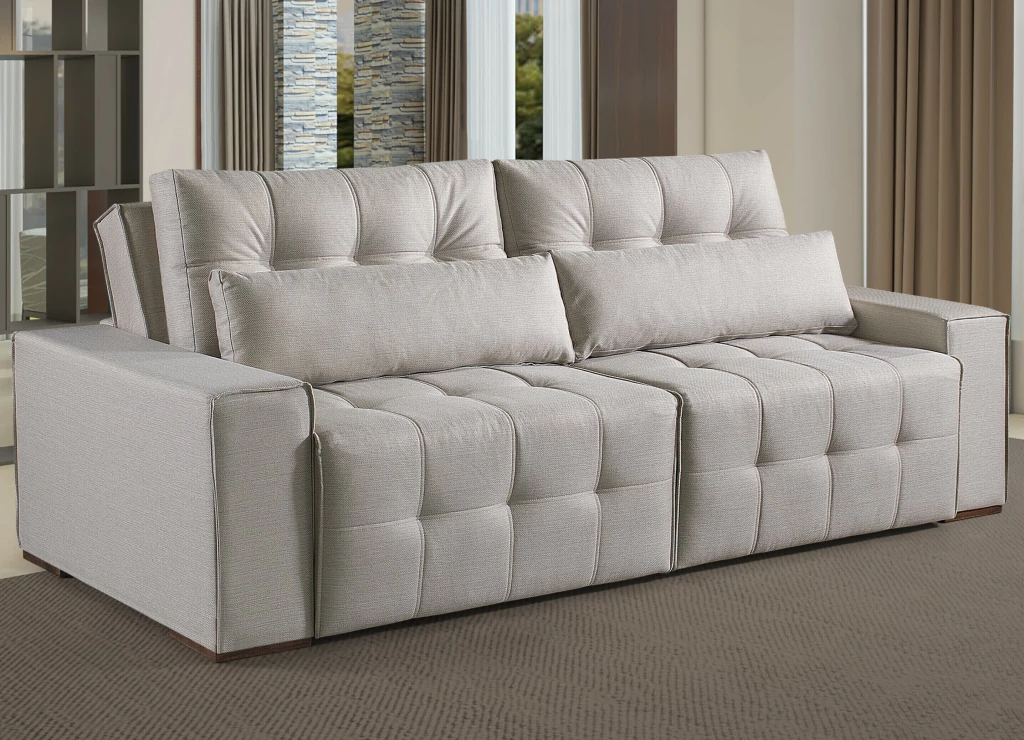 *Assento - Retrál, com molas bonnel por assento, com espuma D26 revesdo com manta de espuma D20 so e manta siliconada.