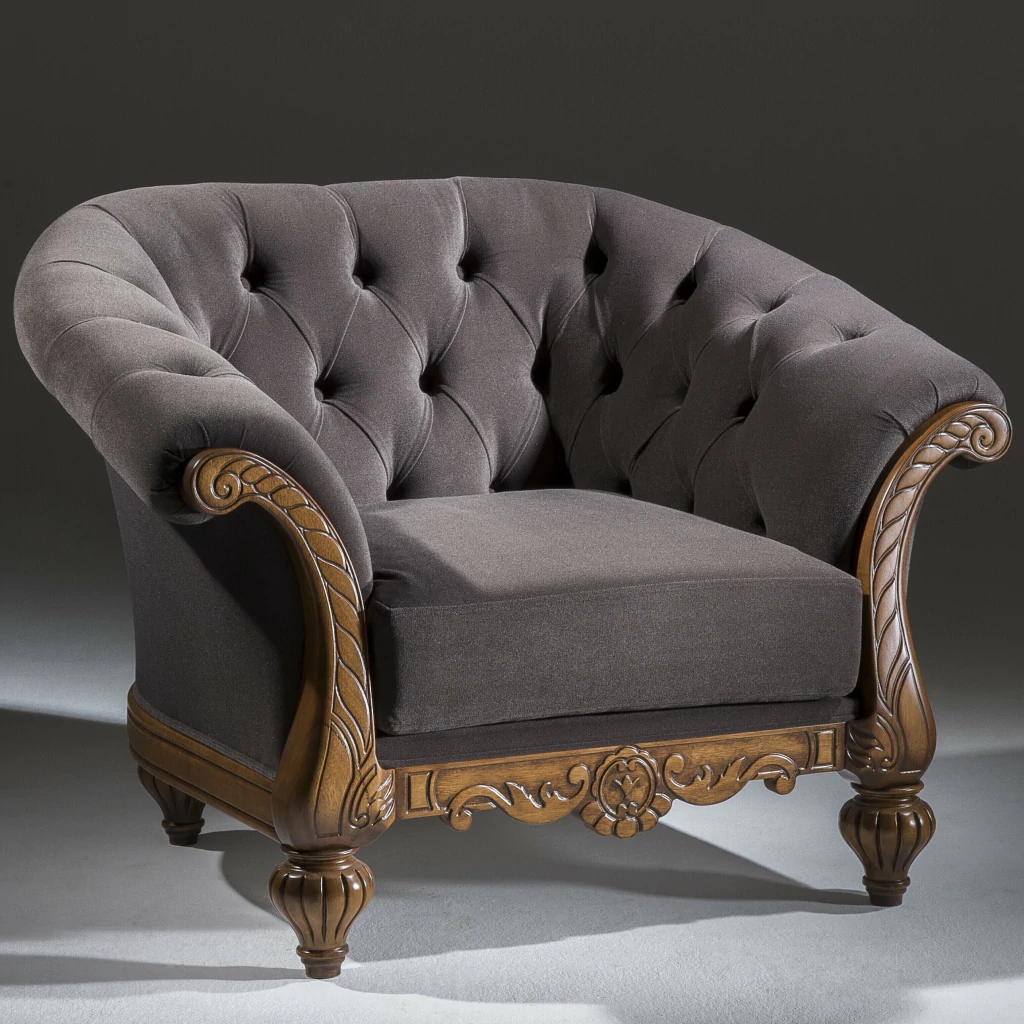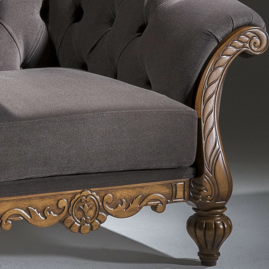 Sofá Clássico 1 Lugar com Captone e Estrutura Madeira Maciça - LUXO