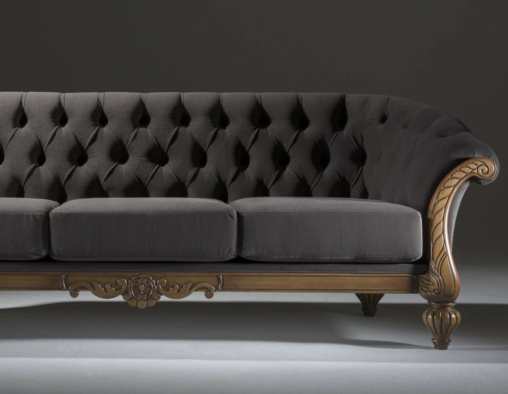Sofá Clássico 3 Lugares com Captone e Estrutura Madeira Maciça - LUXO