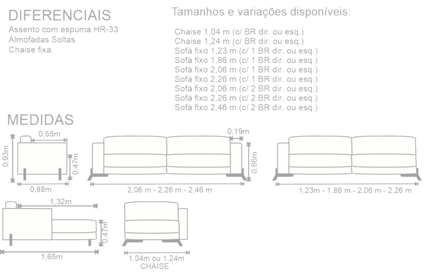 ***Tamanho: 3,10m - Sofá de 1,86 + Chaise de 1,24 (Preço Produto Anunciado)