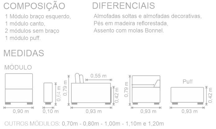 Para escolher TAMANHOS e TECIDOS diferentes, entre em contato em nossos canais de atendimento. DeguileMóveis.Com
