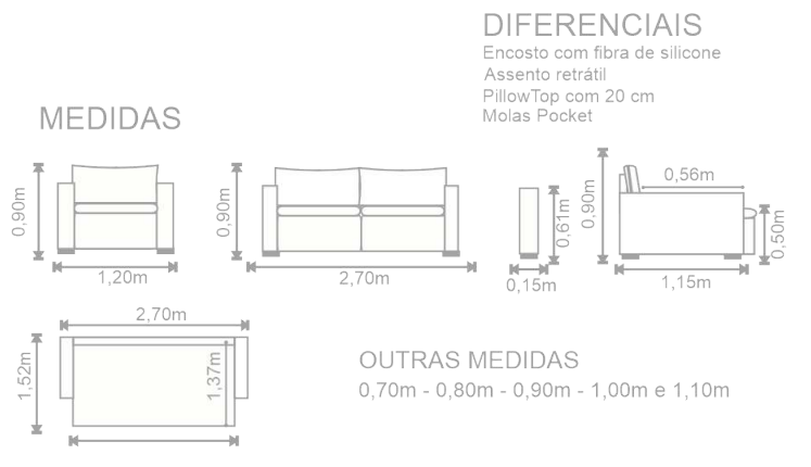 Para escolher TAMANHOS e TECIDOS diferentes, entre em contato em nossos canais de atendimento. DeguileMóveis.Com