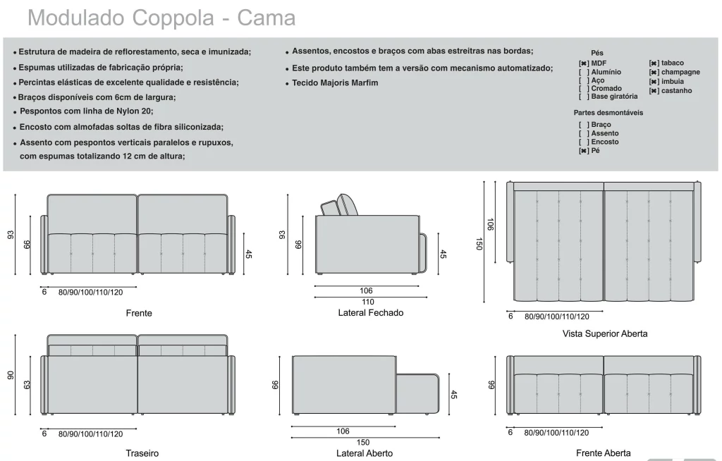 Para escolher TAMANHOS e TECIDOS diferentes, entre em contato em nossos canais de atendimento. DeguileMóveis.Com