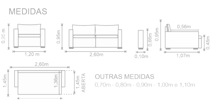 Para escolher TAMANHOS e TECIDOS diferentes, entre em contato em nossos canais de atendimento. DeguileMóveis.Com